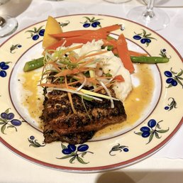 Nice place for anniversaries! We absolutely come here again!! *Food* Calamari-- it goes well with alcohol;) Crab stuffed salmon with lobster sauce-- Highly recommended for salmon lovers! My husband and I love salmon and order it often, but this was the best we've had recently. Spicy Cactus-- I ordered it because the name sounded interesting. It was spicy and tasty! *Service* We visited here on my birthday, and the service was wonderful, with surprises like a rose flower, photo shooting, and ice cream served after the meal. *Ambiance* The view from the restaurant was nice and we could see the San Francisco buildings!